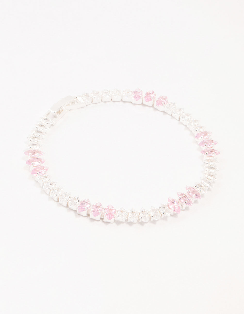 Boost your wrist game with this dazzling silver bracelet! The marquise-cut cubic zirconia in clear and pink create a mesmerizing sparkle. Perfect on its own or stacked with other bracelets, it's your go-to for a chic, sophisticated look.