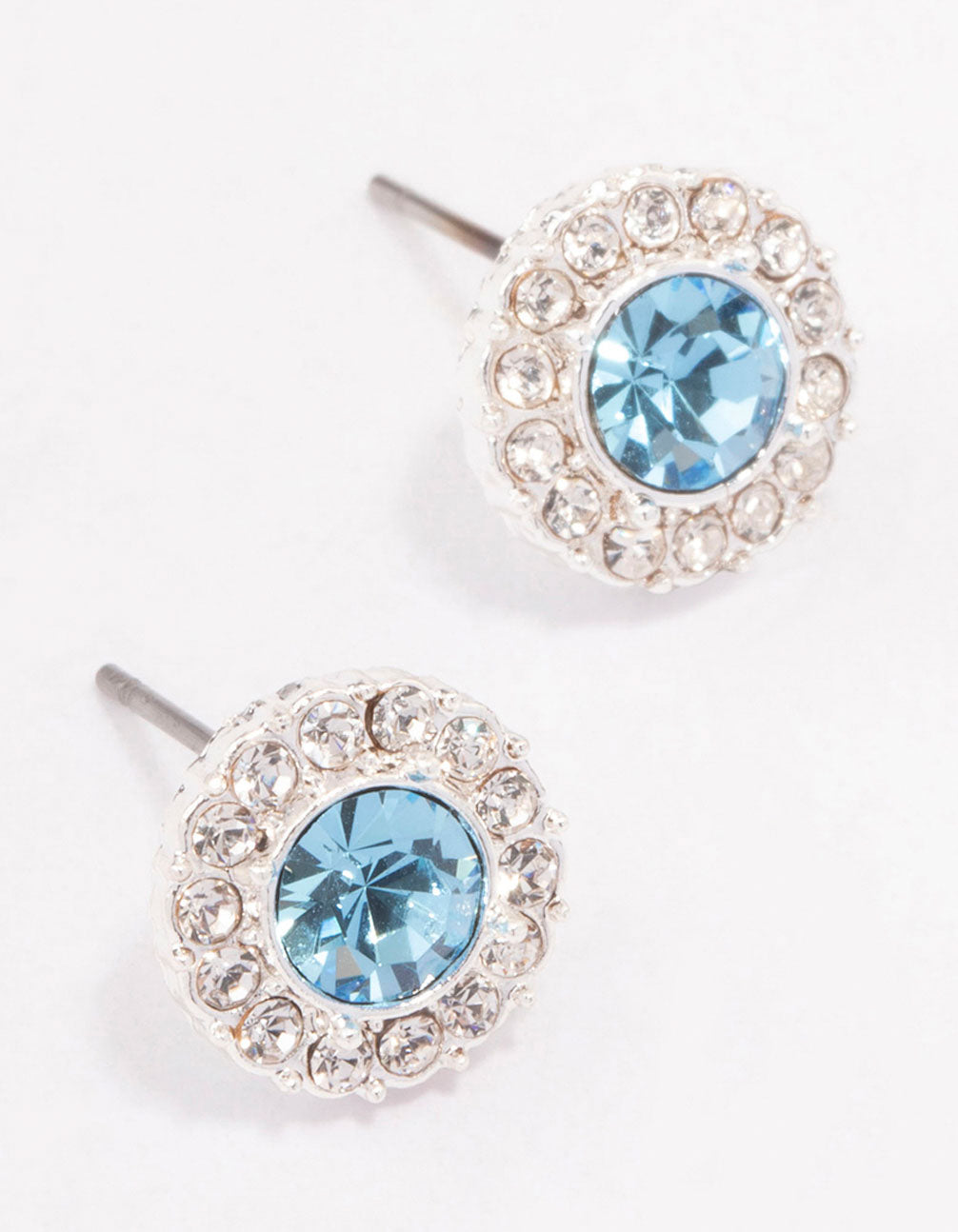 Silver Aqua Crystal Halo Stud Earrings