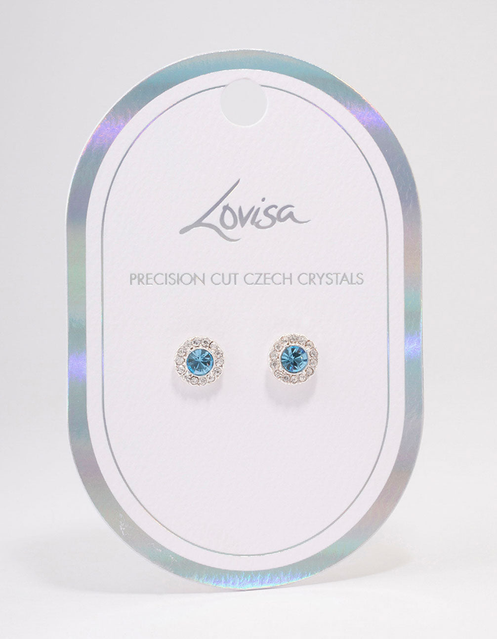 This set of simple stud earrings feature round, aqua-coloured czech crystals for a touch of sparkle.