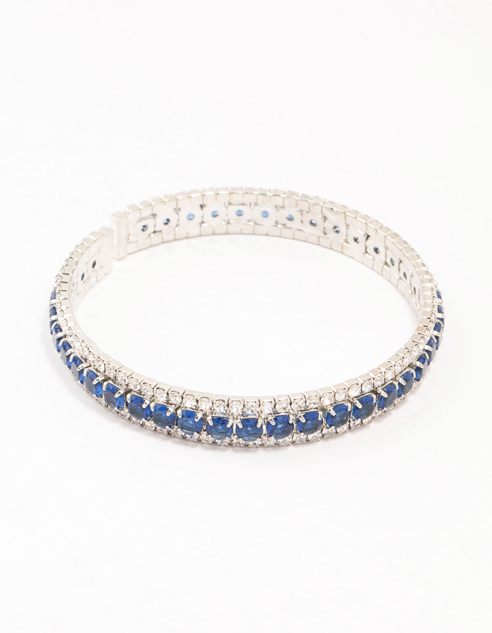 Silver & Blue Round Encased Cubic Zirconia Wrist Cuff