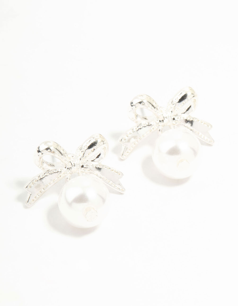 Add a dash of elegance to your look with these Silver Bow & Pearl Small Drop Earrings. These dainty drop earrings feature a delicate silver bow paired with a classic pearl, making them perfect for both everyday wear and special occasions. Their timeless design is ideal for dressing up casual outfits or adding a subtle sparkle to evening wear. Pair them with a flowy dress or a sleek blouse for a chic finish. Whether you're heading to a brunch, a wedding, or simply want to elevate your daily style, these pearl and silver drop earrings are a versatile jewellery box must-have.