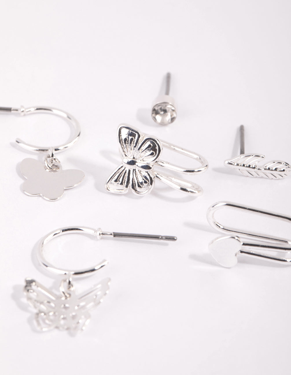 Silver Butterfly Ear Cuff Stack 6-Pack