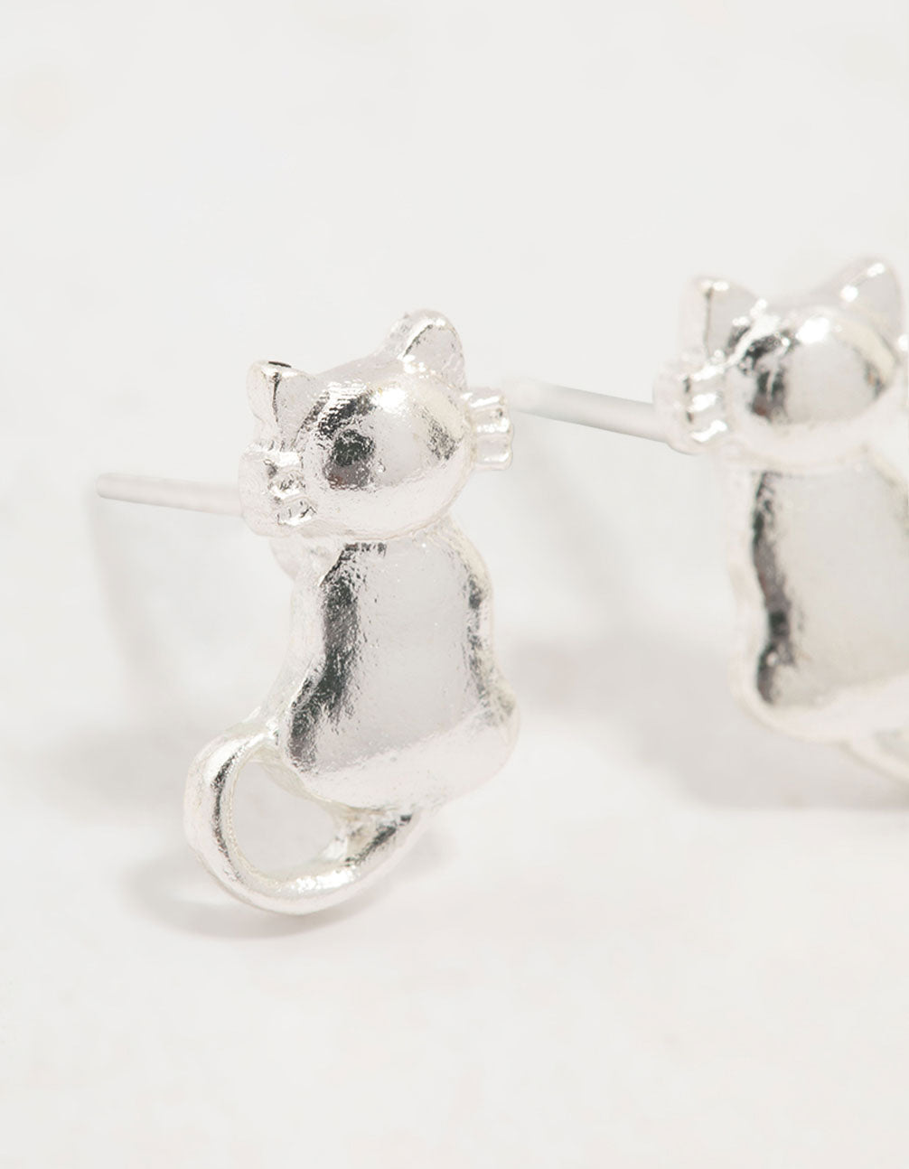 Silver Cat Stud Earrings