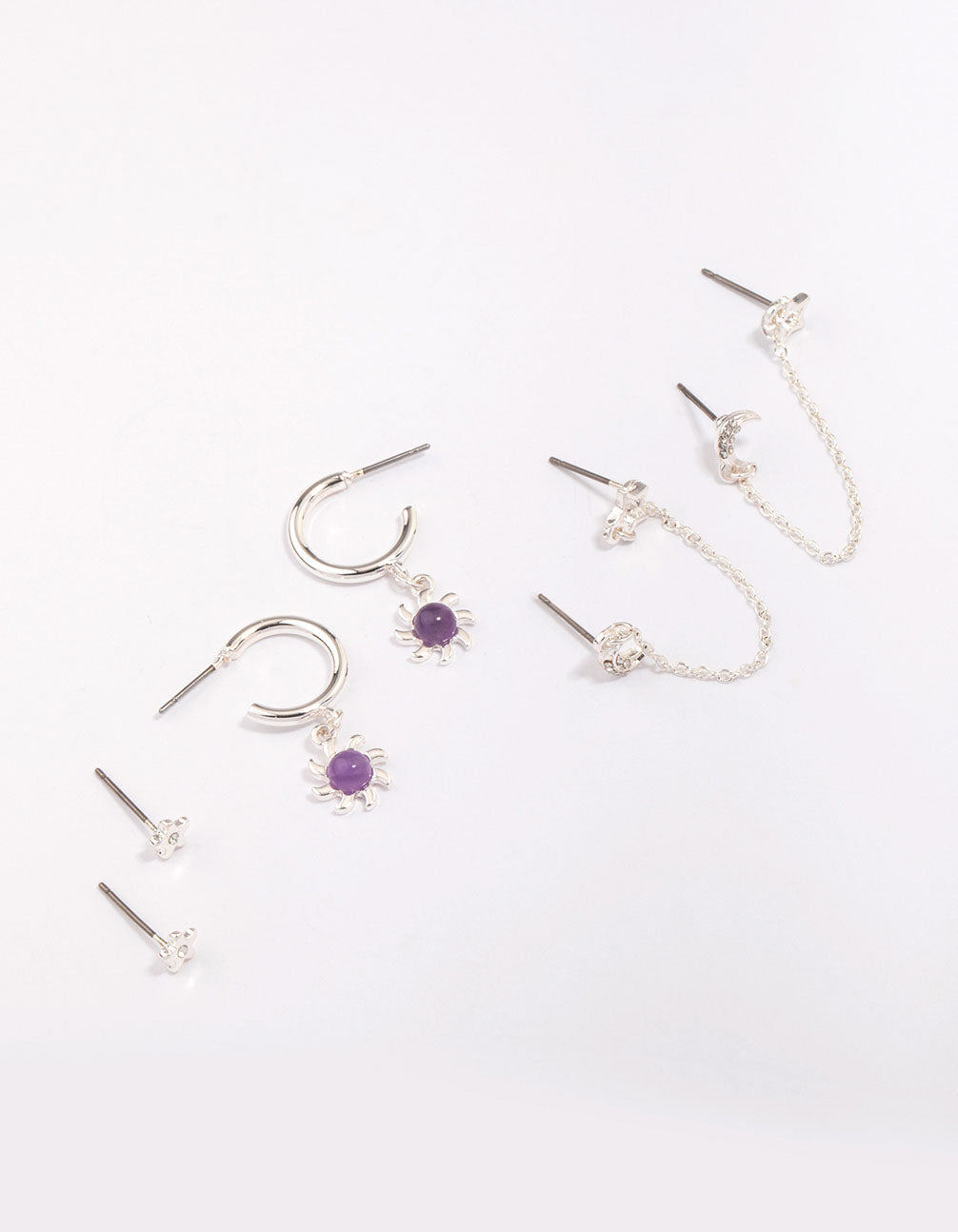Silver Celestial Amethyst Chain Hoop Earring 4-Pack