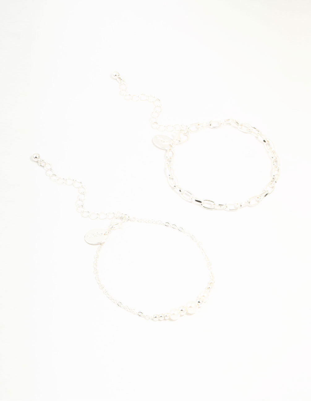 Silver Chain Link & Pearl Bracelets 2-Pack