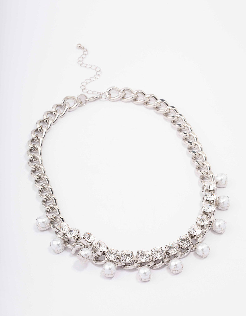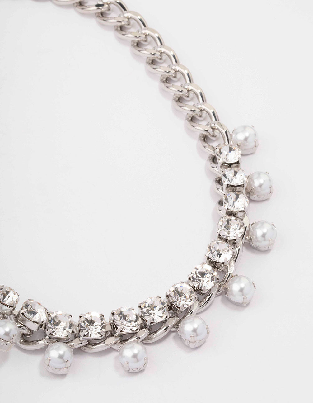 This statement choker features a wide, chunky chain adorned with large diamantes and dangling pearls for a refined finish.