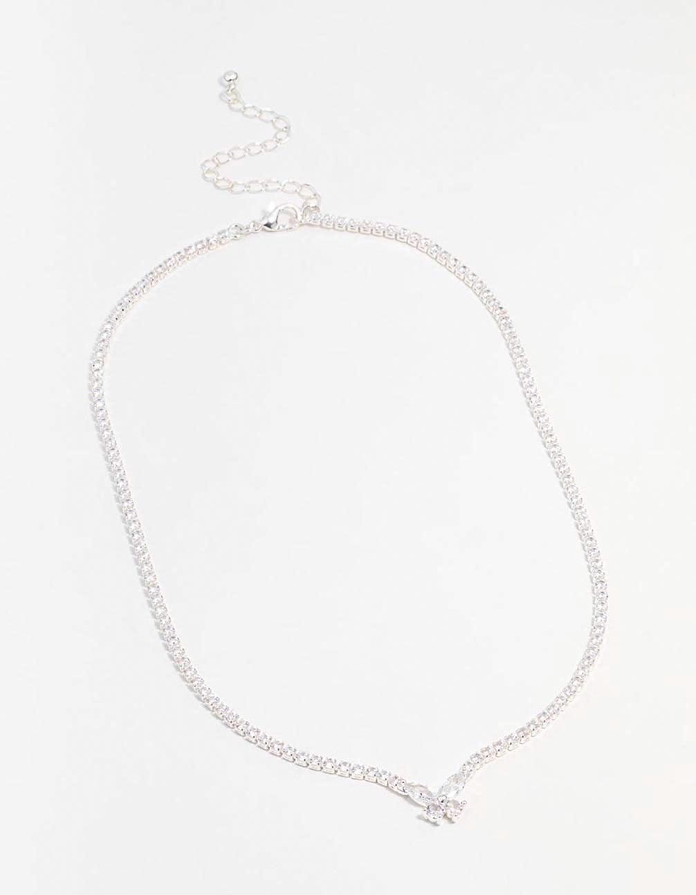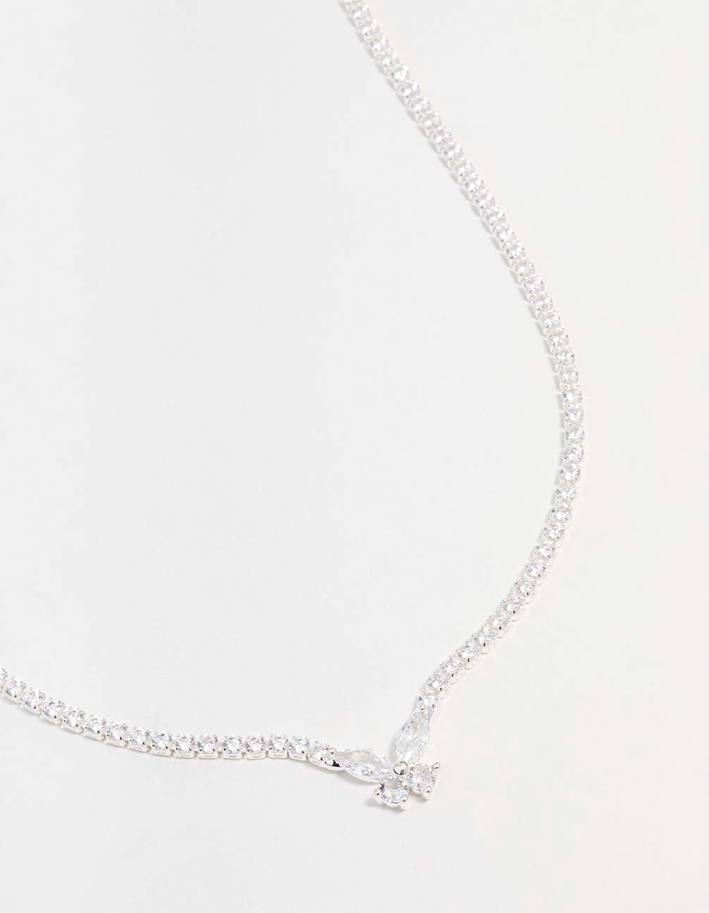 This elegant butterfly pendant necklace features a silver chain and pendant adorned with sparkling cubic zirconia stones. The butterfly pendant hangs gracefully and has the right amount of shine and glimmer for different occasions.