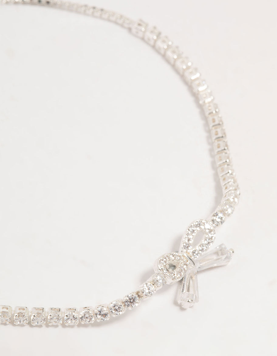 Silver Cubic Zirconia Cupchain Bow Bracelet