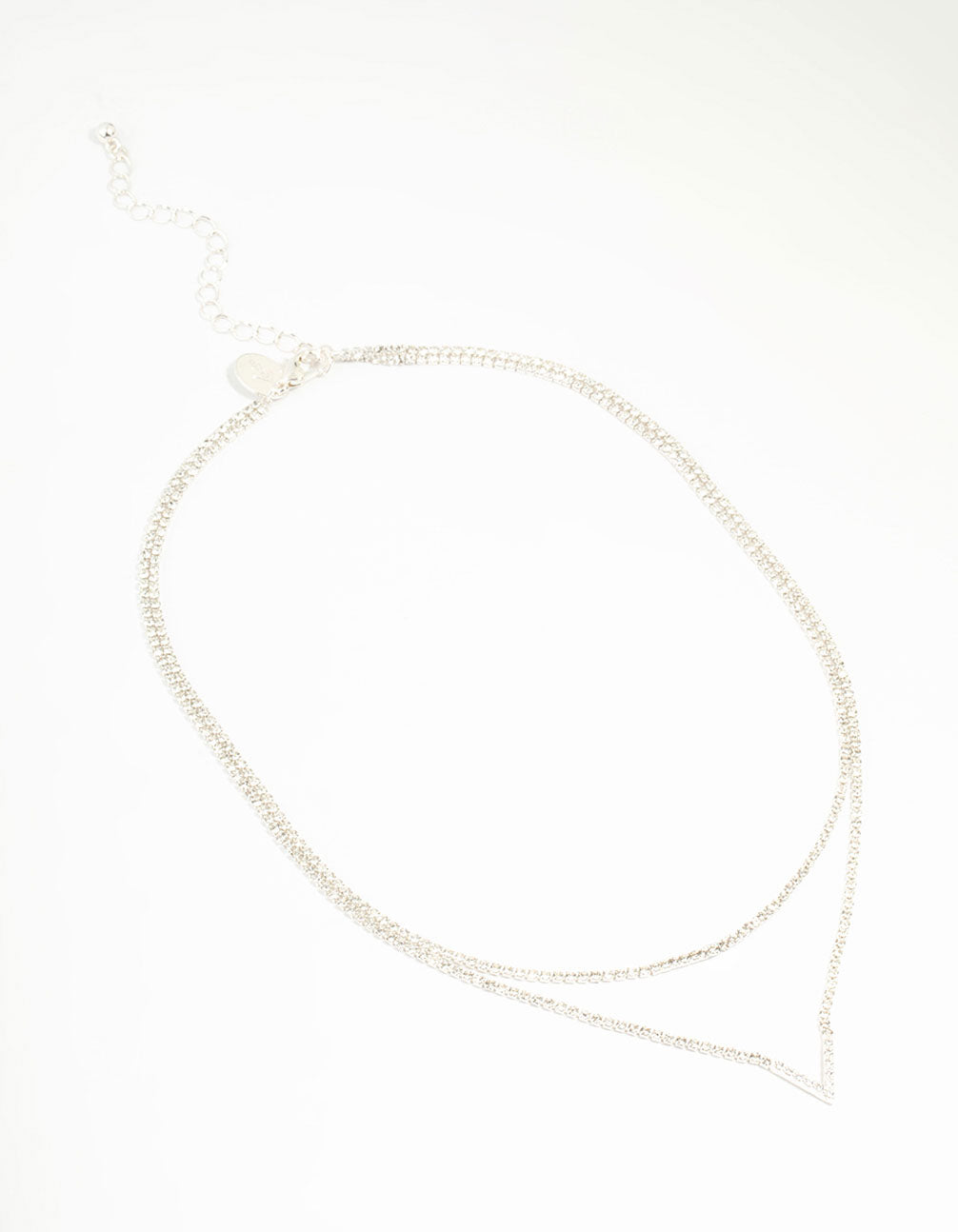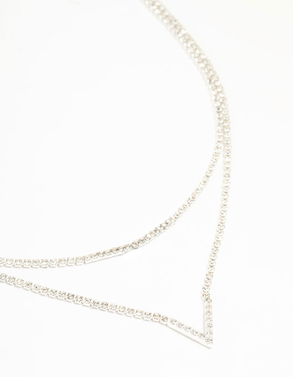 Silver Plated Cubic Zirconia Layered V Necklace