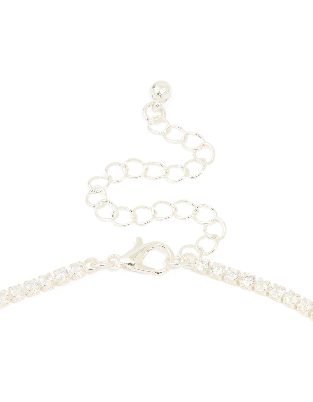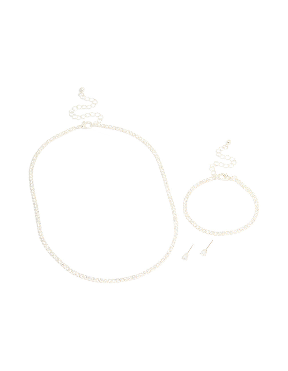 Silver Cubic Zirconia Tennis Necklace, Bracelet & Earrings Set