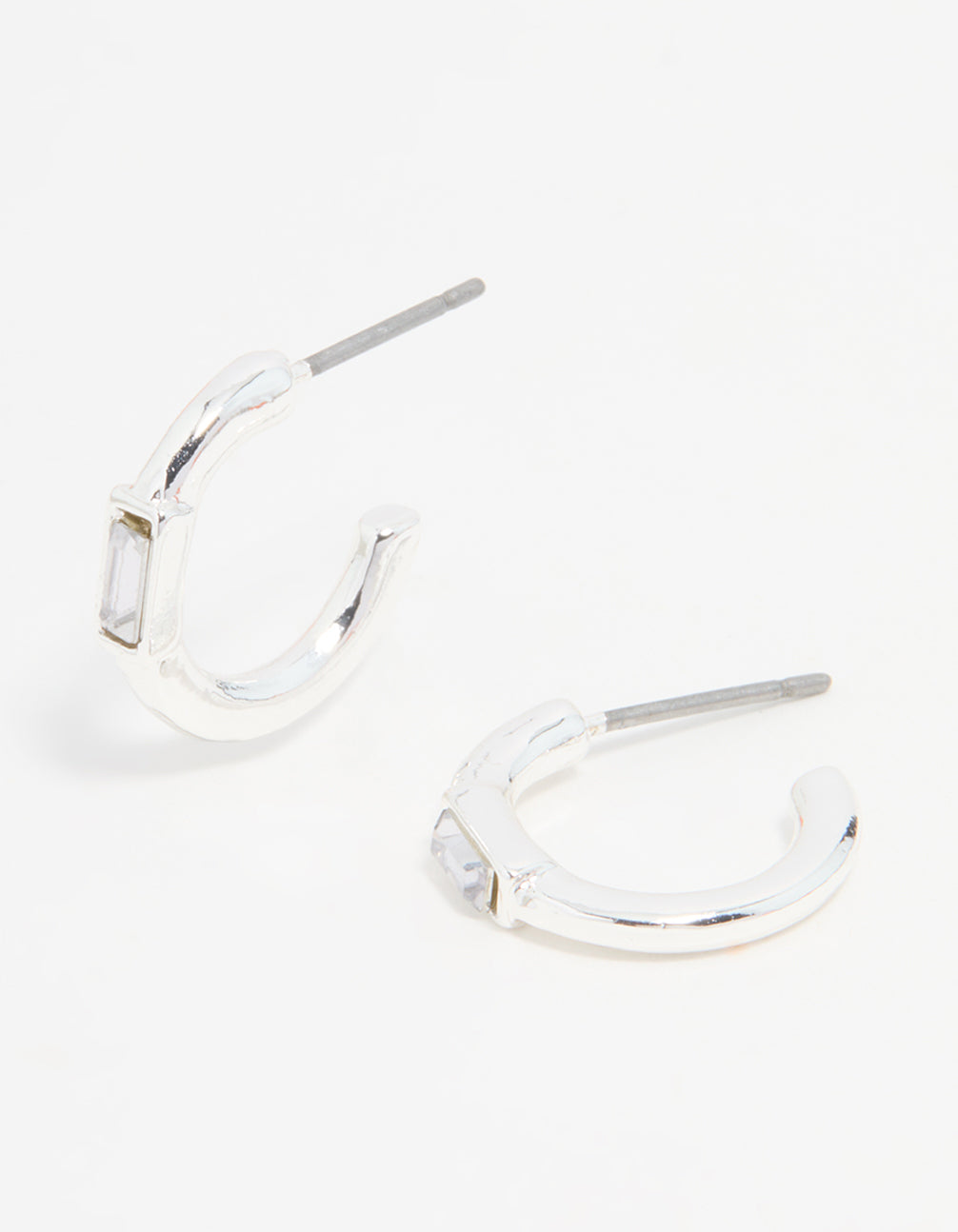 Silver Diamante Baguette Huggie Earrings