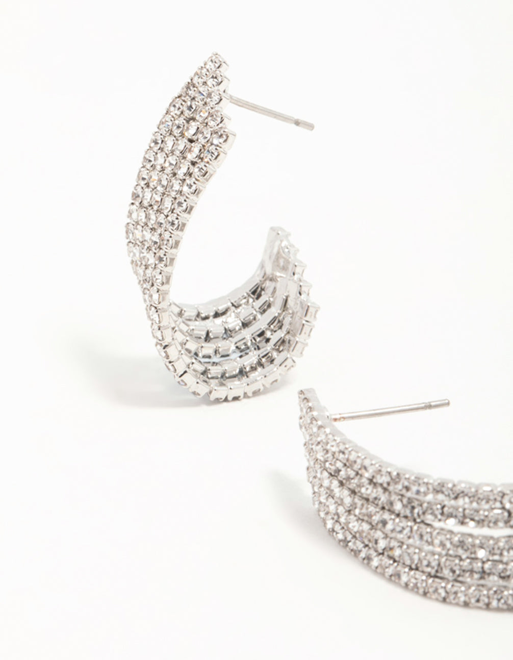 Silver Diamante Cascading Cupchain Hoop Earrings