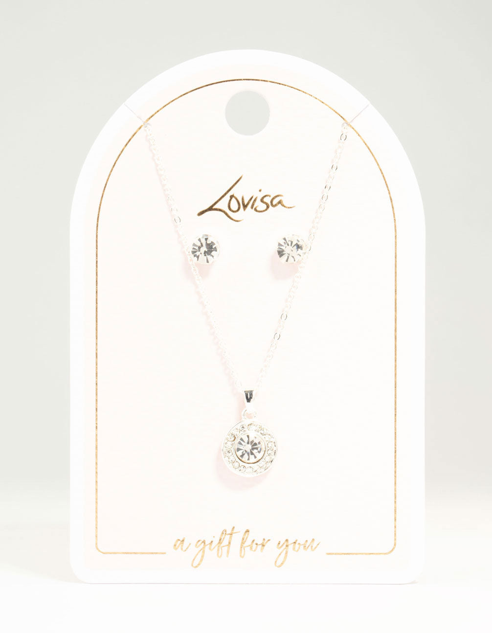 Gift effortless sparkle with this stunning silver-toned jewellery set! Featuring a diamante halo necklace and matching earrings, it adds a subtle touch of glamour to any outfit.