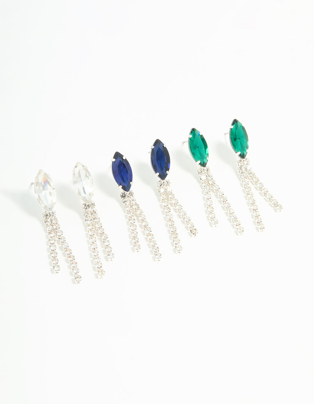 Silver Diamante Marquise Double Cupchain Drop Earrings 3-Pack Silver Diamante Marquise Double Cupchain Drop Earrings 3-Pack Silver Diamante Marquise Double Cupchain Drop Earrings 3-Pack