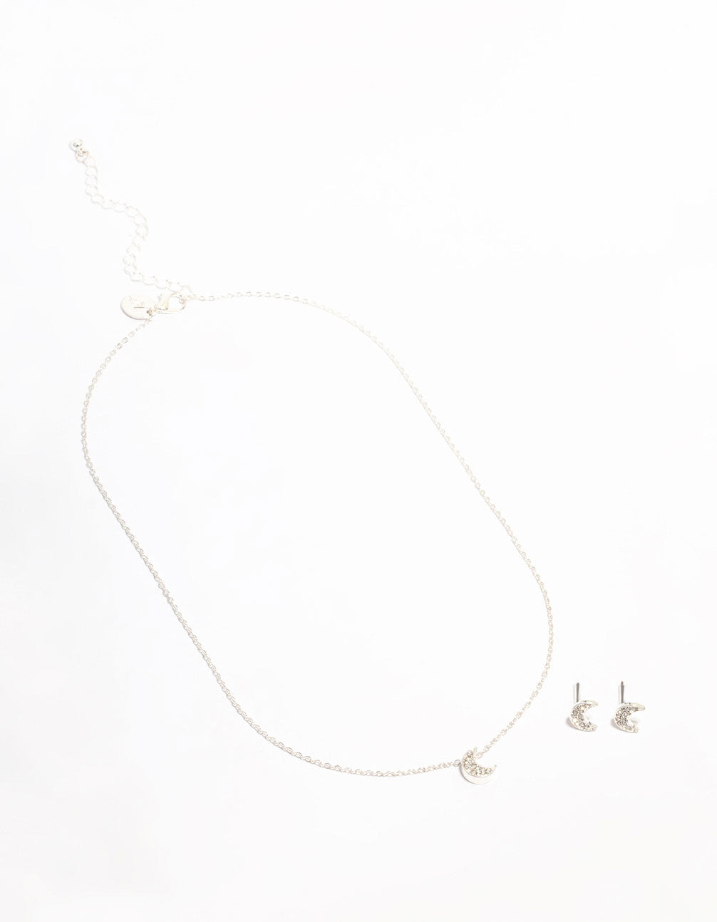 Silver Diamante Moon Necklace & Earrings Set Silver Diamante Moon Necklace & Earrings Set Silver Diamante Moon Necklace & Earrings Set