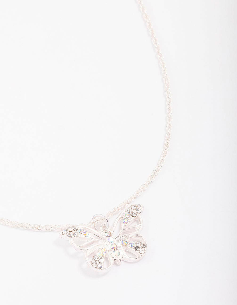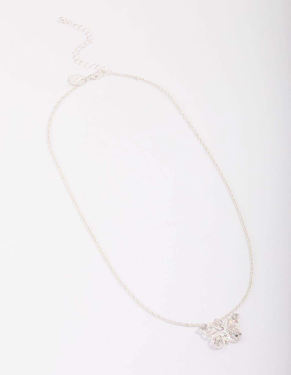 Silver Diamante Open Butterfly Pendant Necklace Silver Diamante Open Butterfly Pendant Necklace