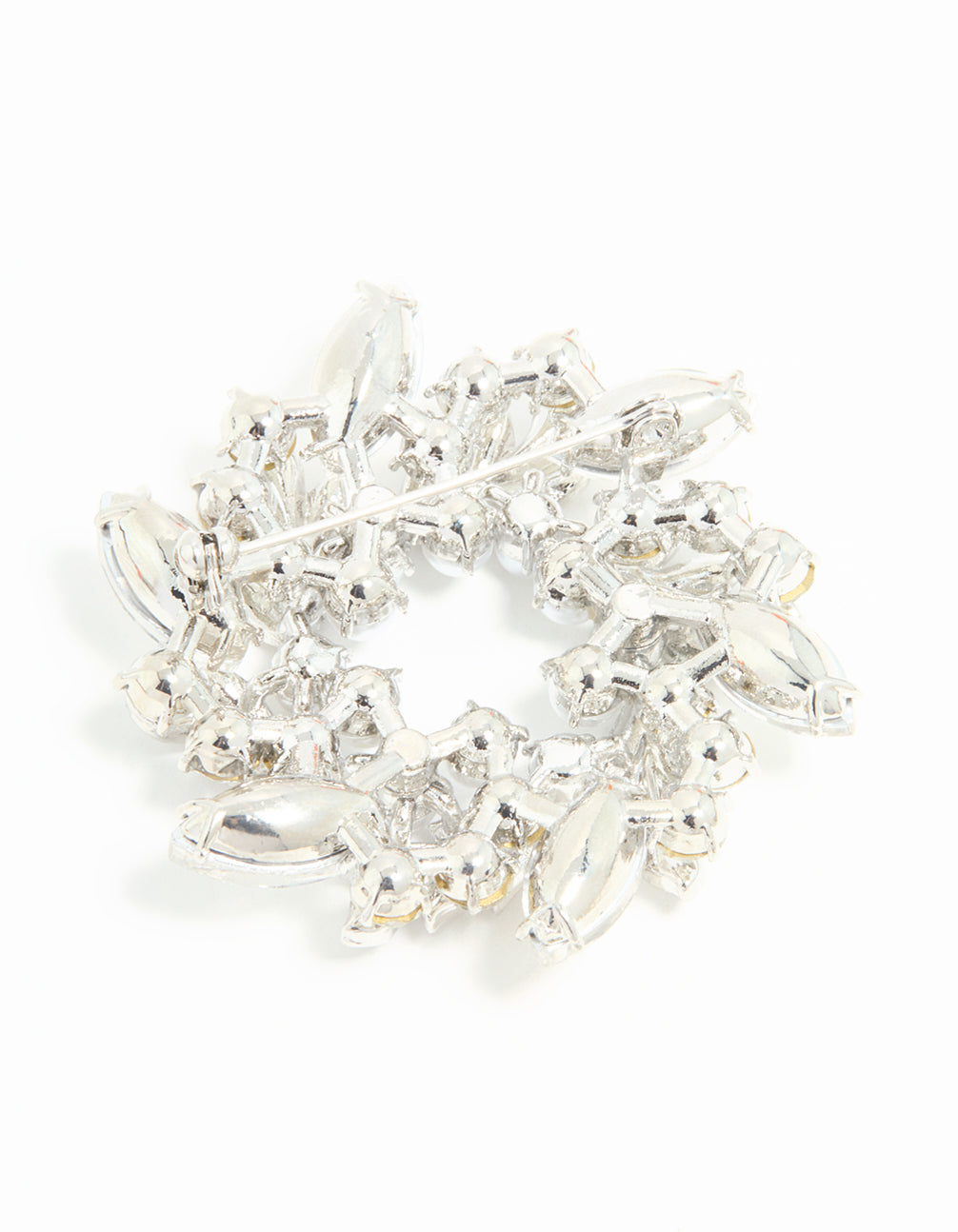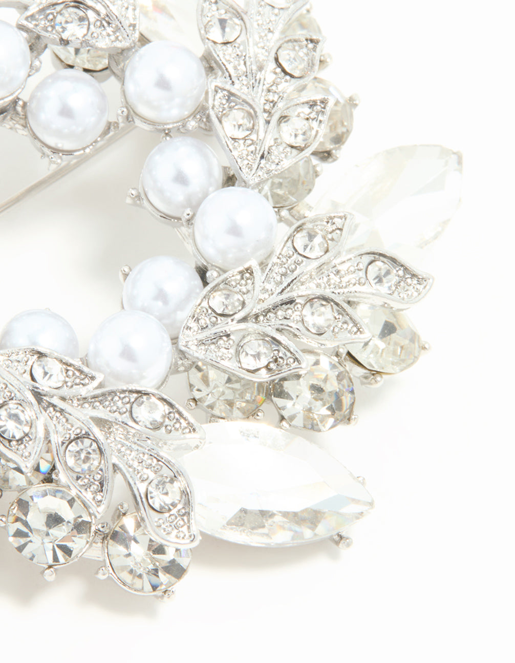 Silver Diamante Pearl Wreath Brooch