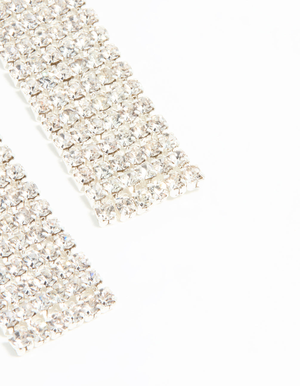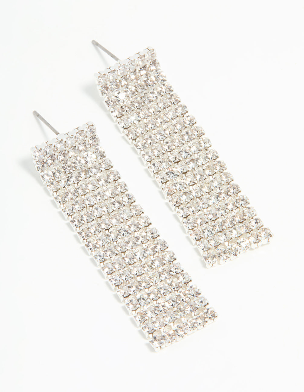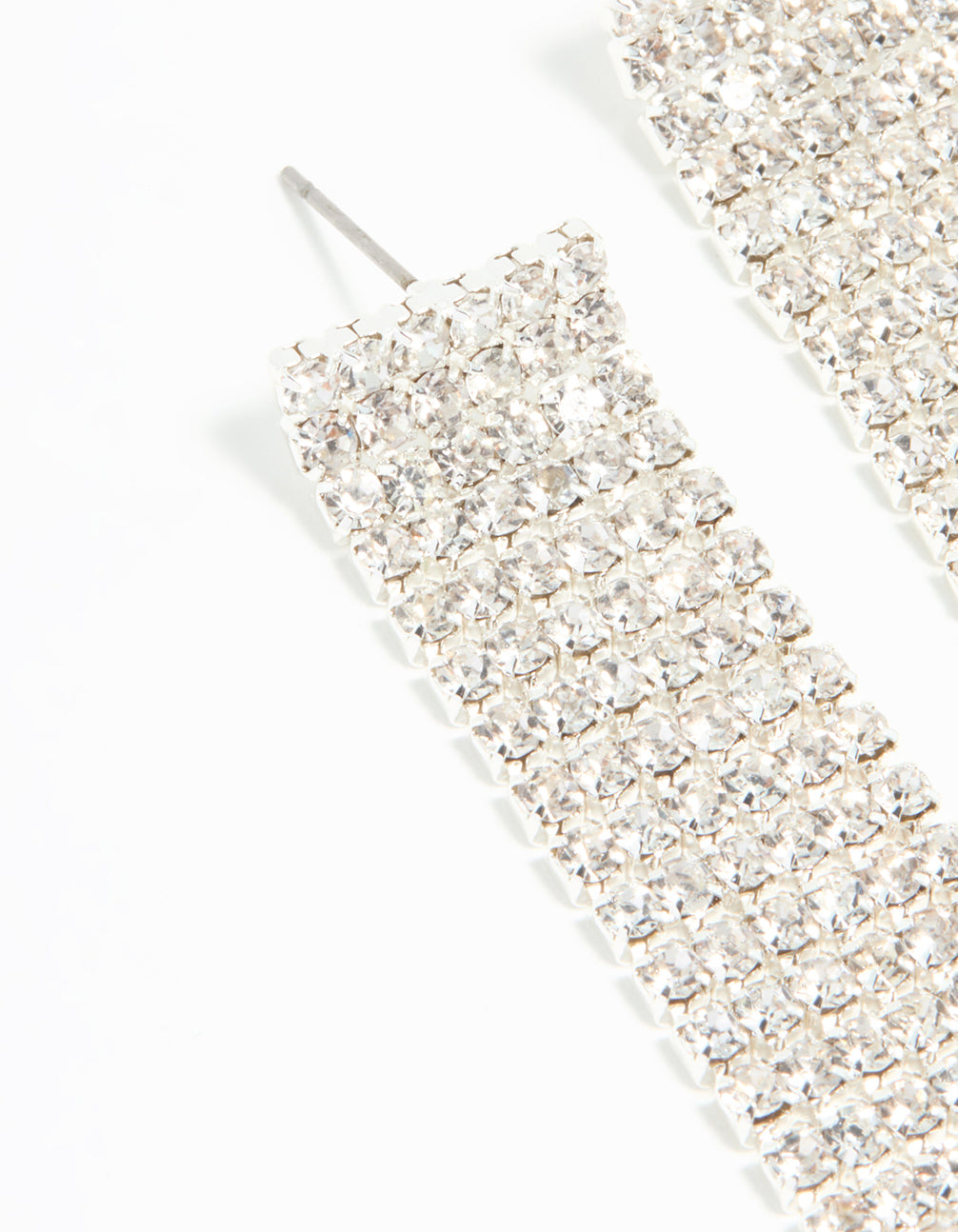 Silver Diamante Thick Straight Cupchain Drop Earrings