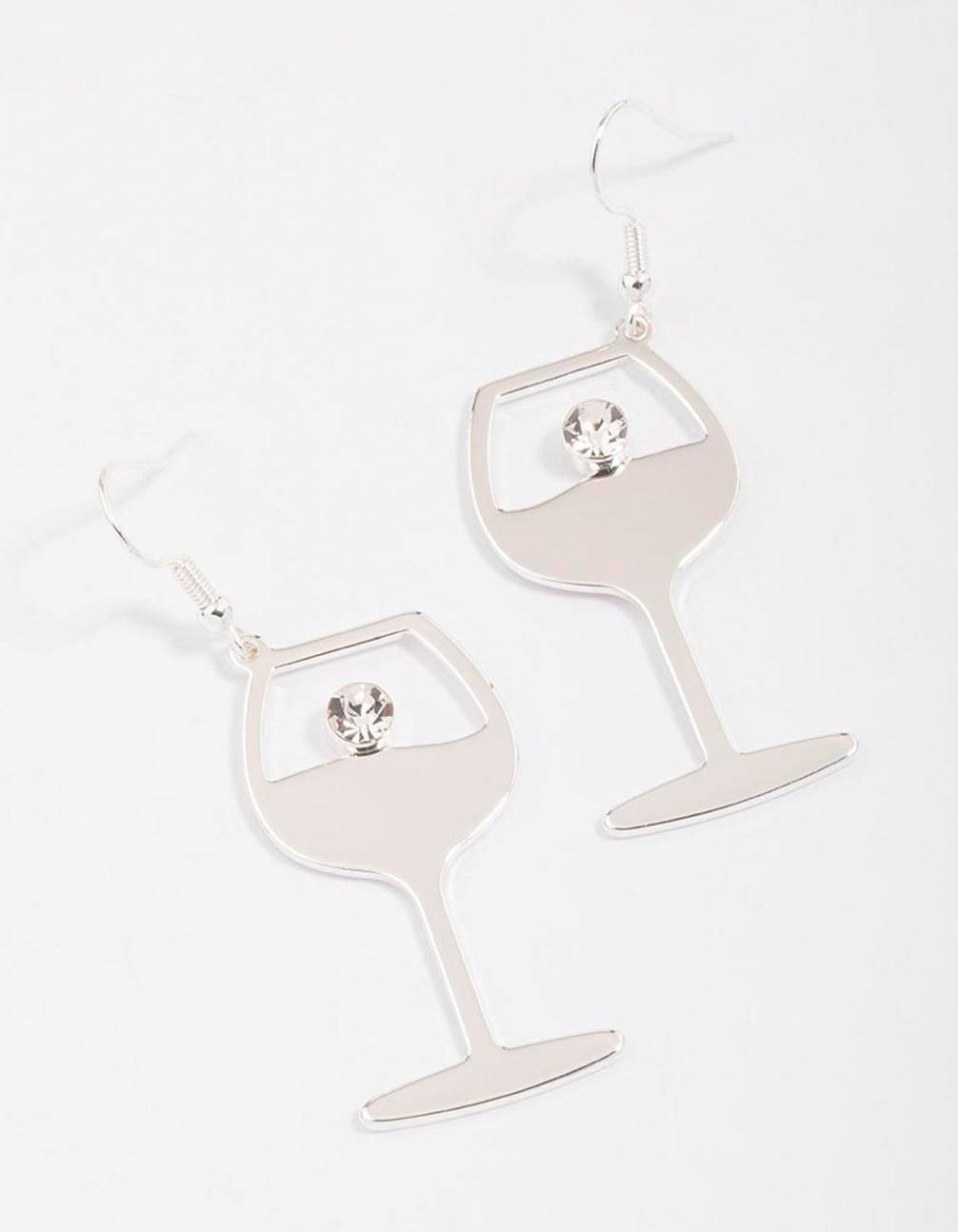 These chic drop earrings feature a wine glass design, adorned with a delicate diamante in the centre.