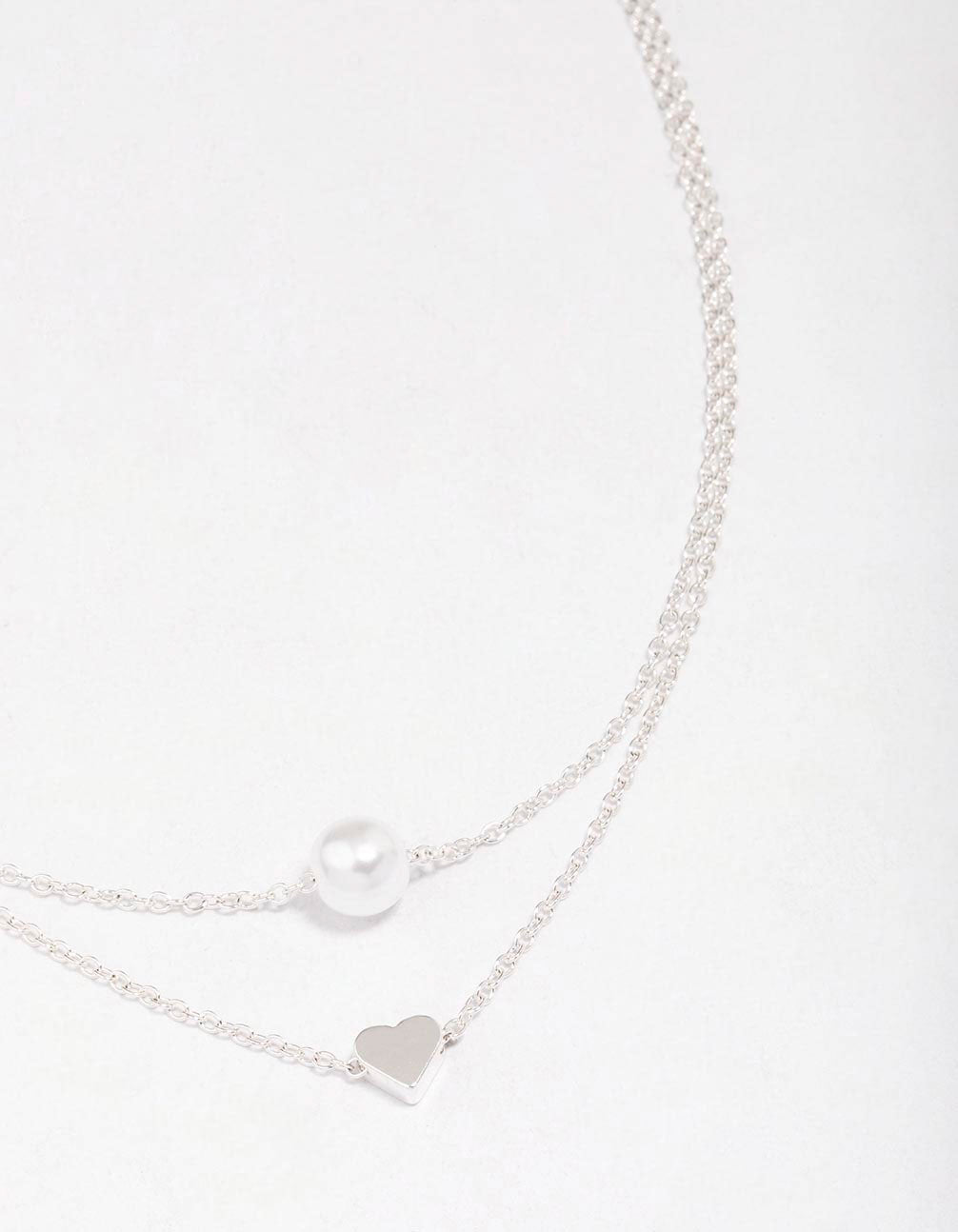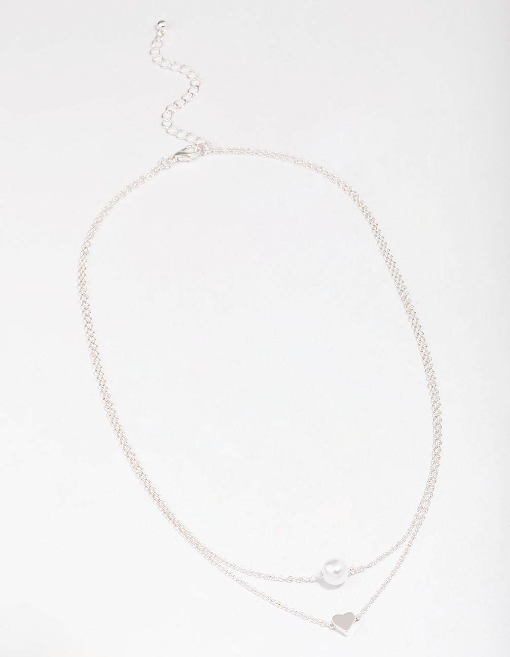 Add a touch of charm to your look with this Silver Double Chain & Pearl Heart Layered Necklace. This stylish layered necklace features two delicate silver-tone chains, one adorned with a dainty pearl heart charm for a classic, romantic vibe. Perfect for everyday wear or special occasions, it pairs effortlessly with casual tees, floaty dresses, or even your go-to party outfit. Whether you're layering it with other necklaces or letting it shine solo, this versatile jewellery piece brings instant elegance. Ideal for those who love silver jewellery with a contemporary twist, it's a must-have accessory for any jewellery box!