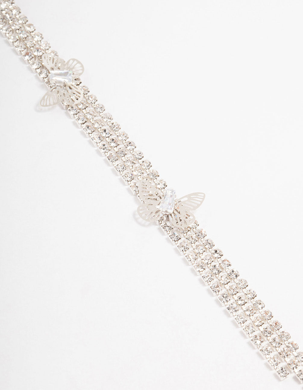 Elevate your bridal look with the eye-catching silver floral diamante butterfly clip. Crafted from sleek silver, it combines floral elegance with a bold butterfly design, adding whimsical flair to your ensemble.