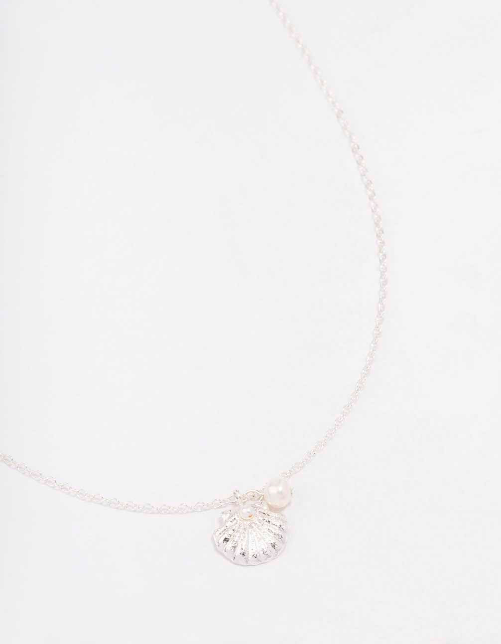 Silver Freshwater Pearl & Clam Pendant Necklace