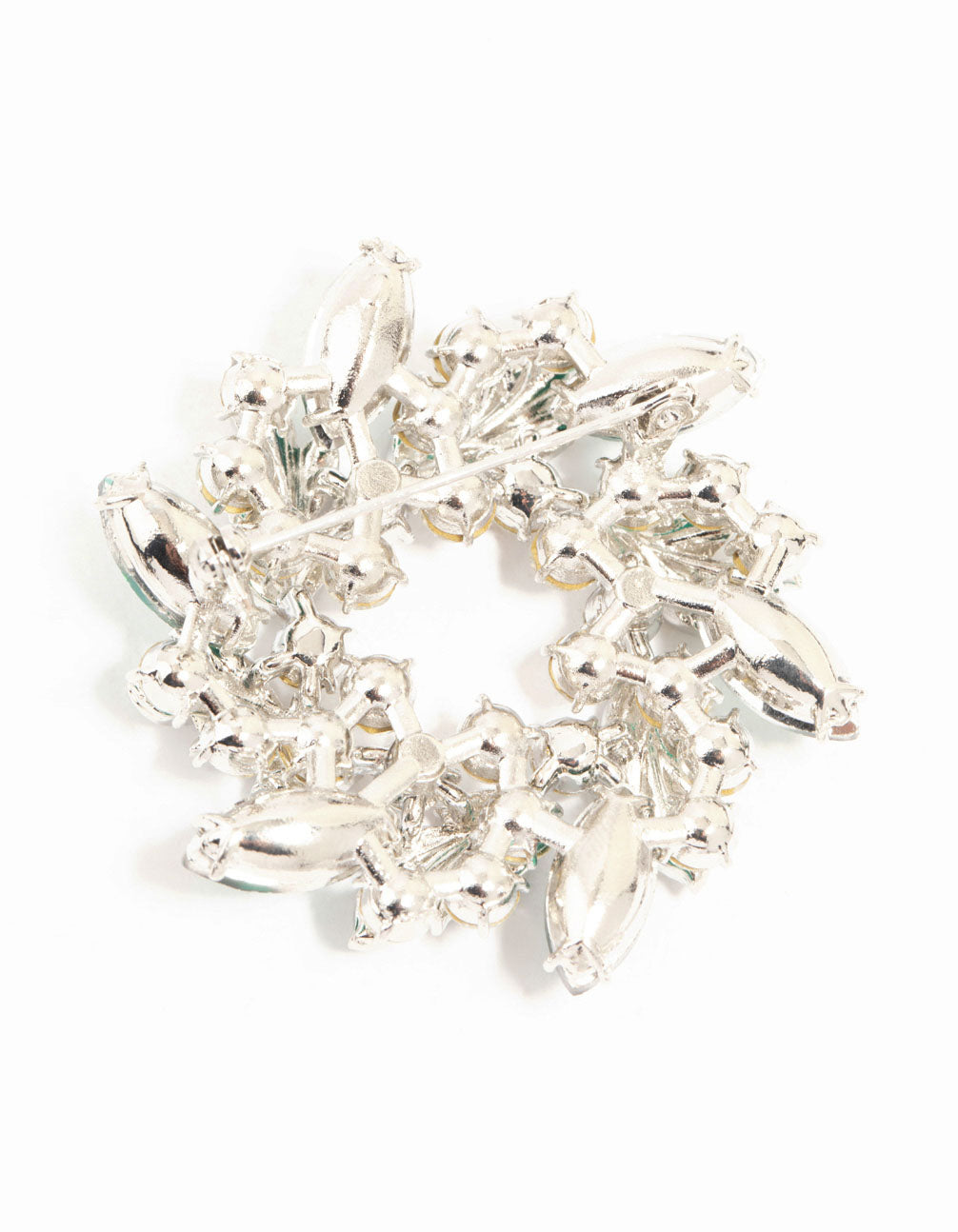 Silver & Green Diamante Wreath Brooch Silver & Green Diamante Wreath Brooch Silver & Green Diamante Wreath Brooch