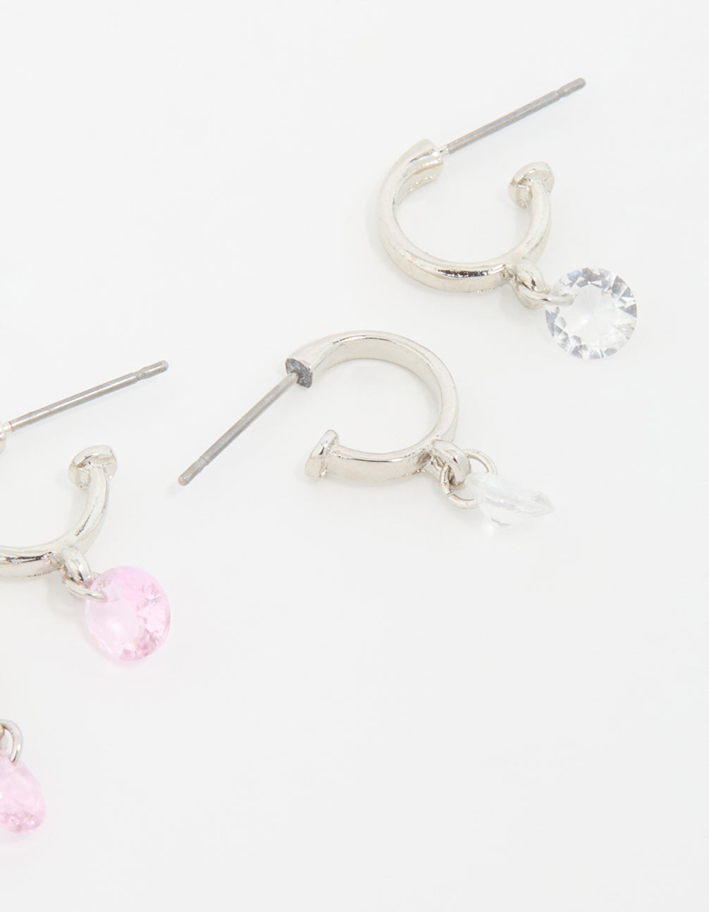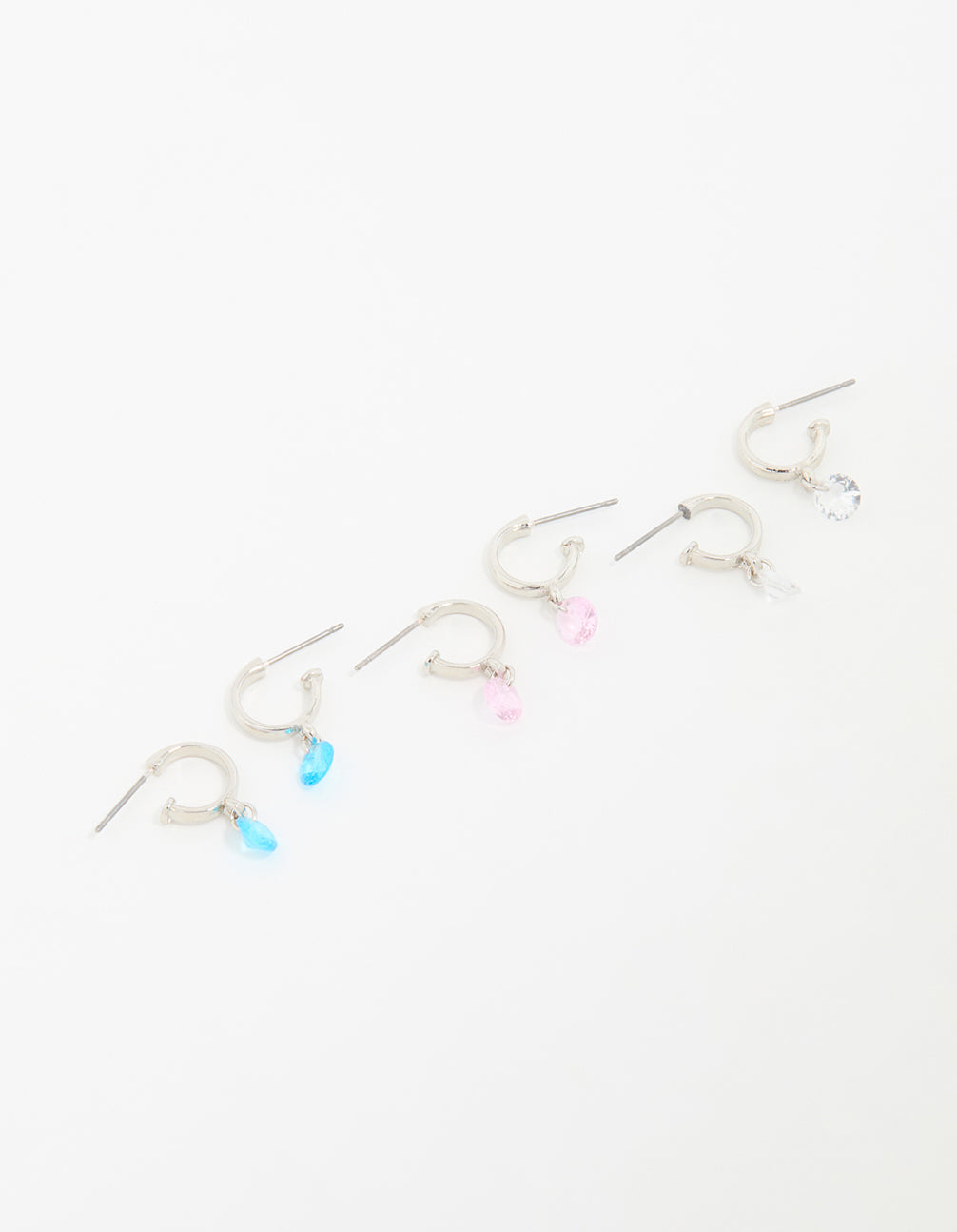 Silver Mixed Stone Huggie Hoop Earrings 3-Pack