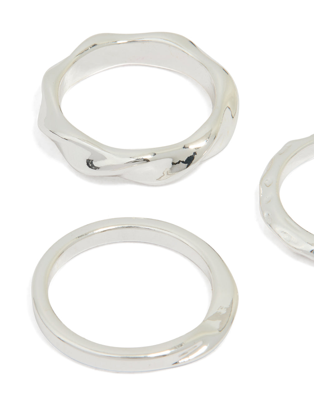 Elevate your accessory game with this Silver Mixed Textured Rings Pack. This is the ultimate set of stacking rings to mix, match, and make your own. Featuring three unique designs with sleek silver tones and mixed textures, these versatile rings are perfect for layering or wearing solo for a minimalist statement. Whether you're dressing up for a night out, rocking a casual brunch look, or adding a subtle edge to workwear, these rings are the go-to jewellery pieces for any occasion. Pair them with silver earrings or a delicate necklace for a coordinated vibe, or mix metals for a stylish twist.