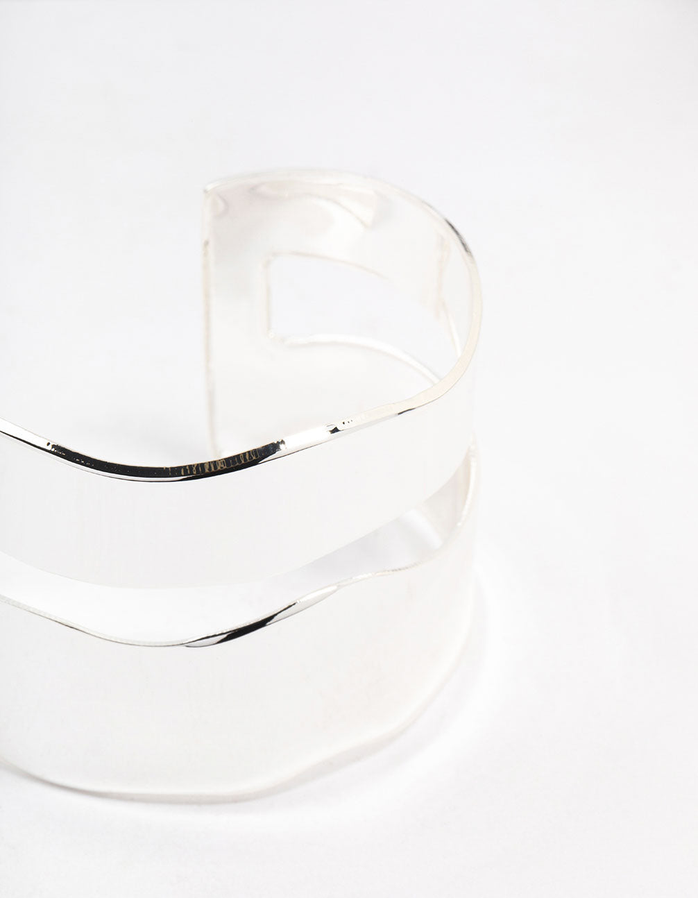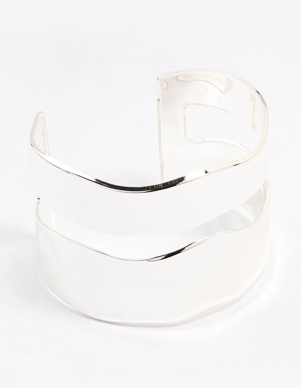 Get your wrists dressed with this double cuff bracelet! This cuff features a shiny silver tone with a molten texture and organic shape for a bold yet elegant look.