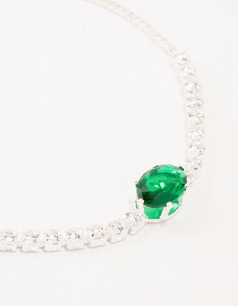 Glow green with this Silver Oval Green Cubic Zirconia Toggle Bracelet. Its vibrant green stones and shimmering silver make it the perfect pop of color for any outfit.