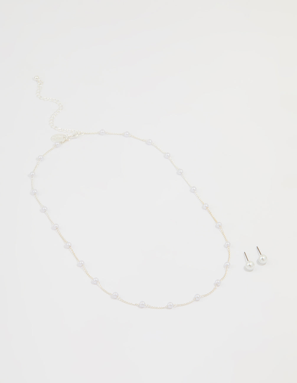 Looking for the perfect gift or a chic accessory to elevate your look? This Silver Pearl Necklace & Earrings Set is here to impress! This jewellery set features a sleek silver-tone necklace with luminous pearl accents, complemented by matching stud earrings for a timeless, polished finish. Ideal for gifting, this elegant set is versatile enough for any occasion—whether you're dressing up for a wedding, a dinner party, or adding a touch of sophistication to your everyday wardrobe. Pair it with a classic dress or a smart blouse for effortless style. With its graceful design and luxurious appearance, this necklace and earring duo is a must-have for anyone who loves understated elegance. Perfect for gifting, it's a thoughtful way to make someone's day shine!