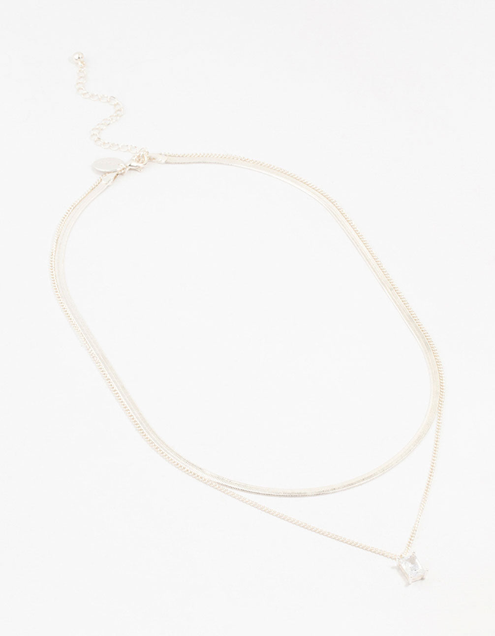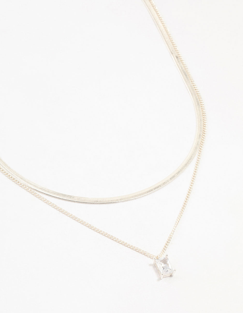 Silver Plated Baguette Diamante & Snake Chain Necklaces 2-Pack
