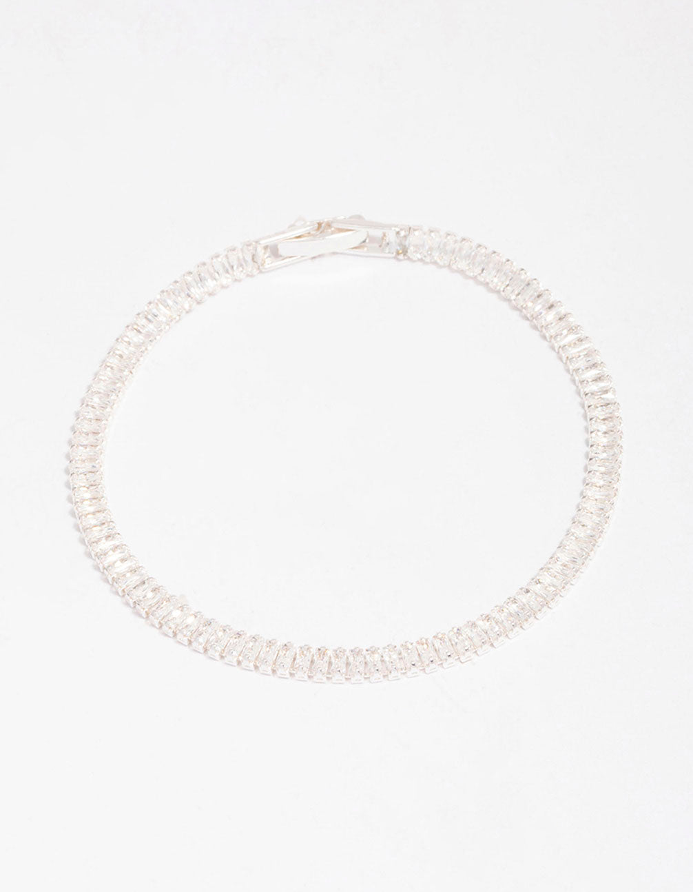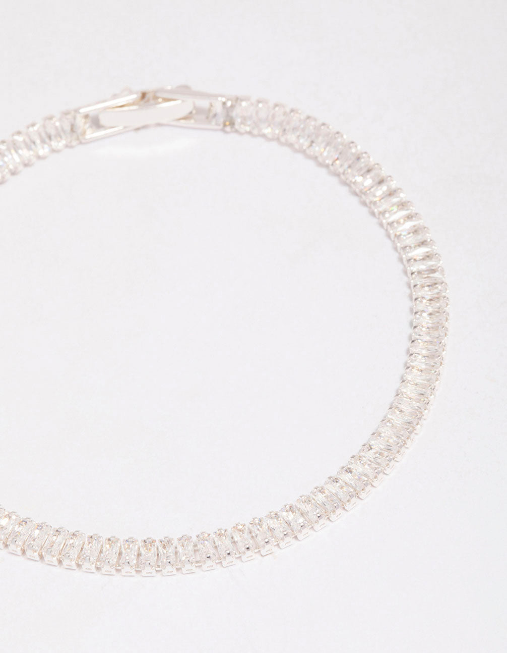 Silver Plated Cubic Zirconia Baguette Tennis Bracelet