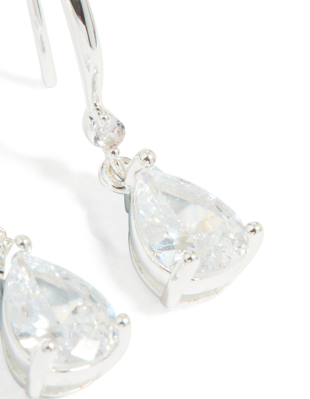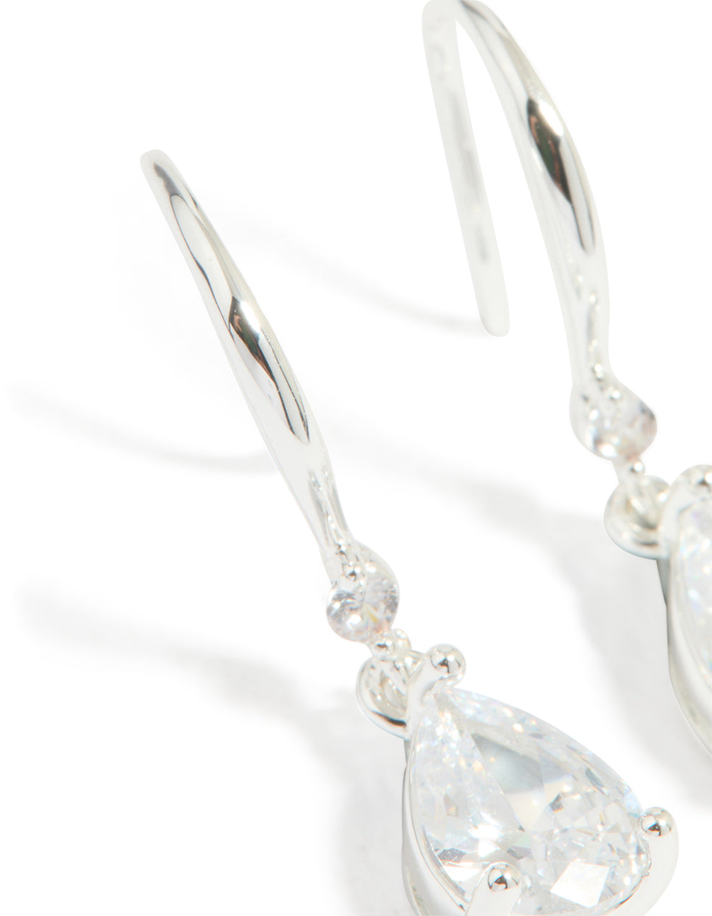 Silver Plated Cubic Zirconia Teardrop Earrings