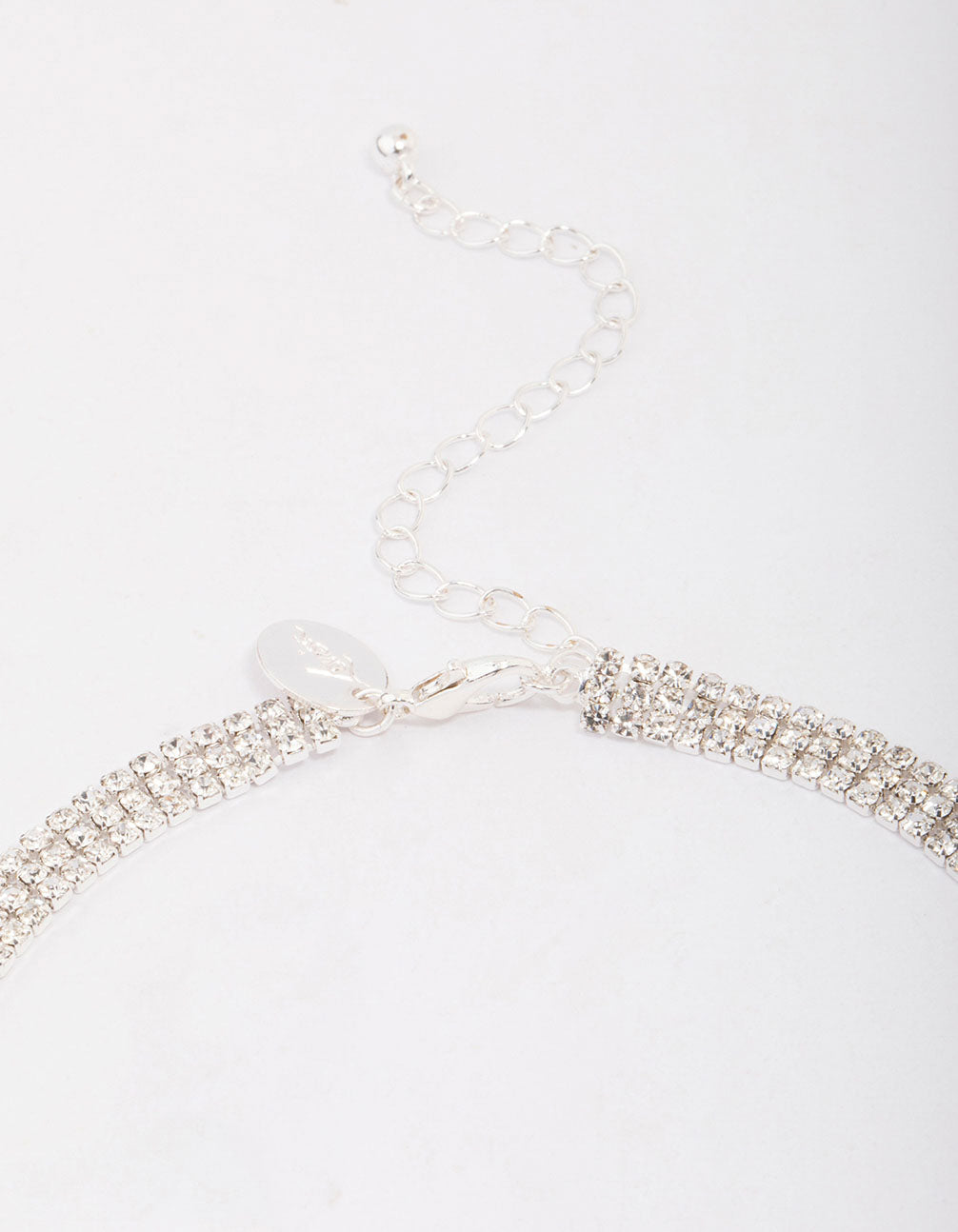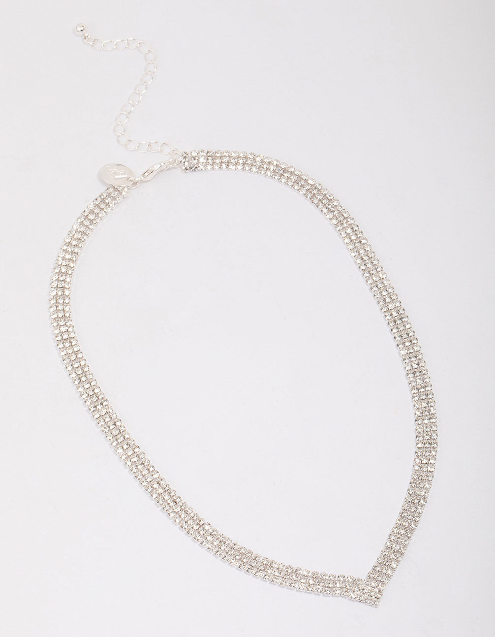 Silver Plated Thick V Neck Cubic Zirconia Necklace