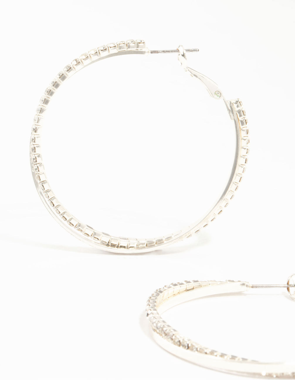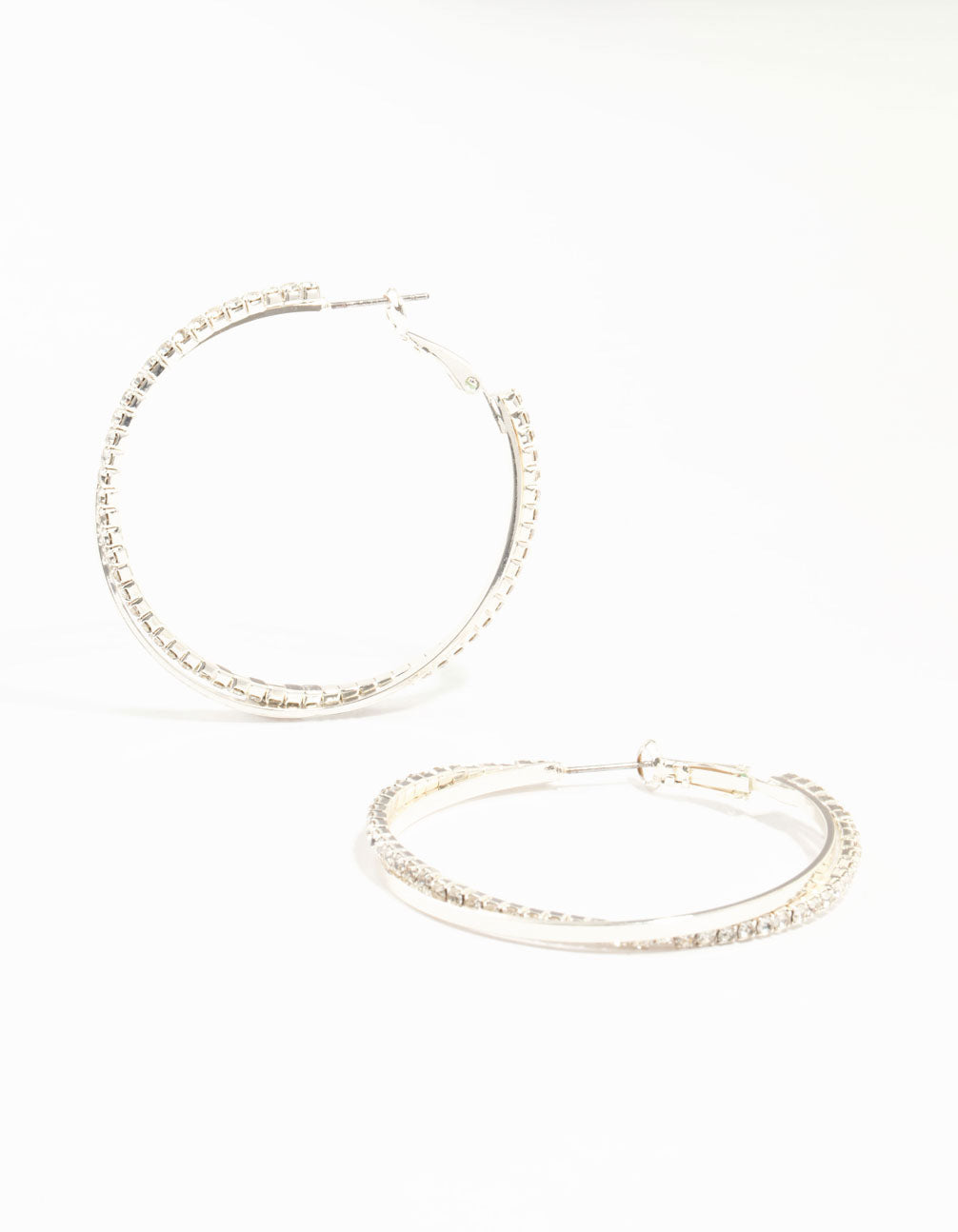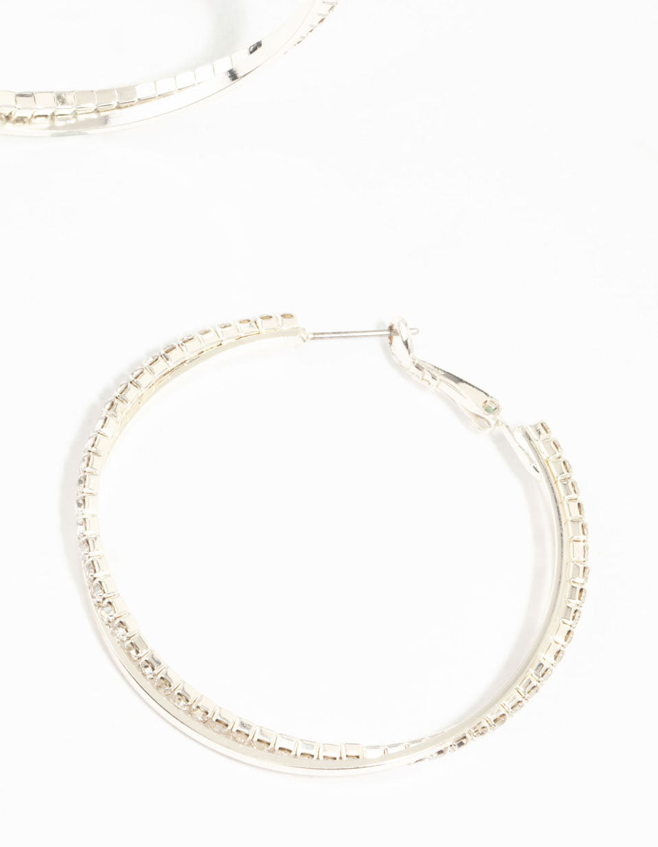 Silver Smooth Cup Chain Diamante Hoop Earrings