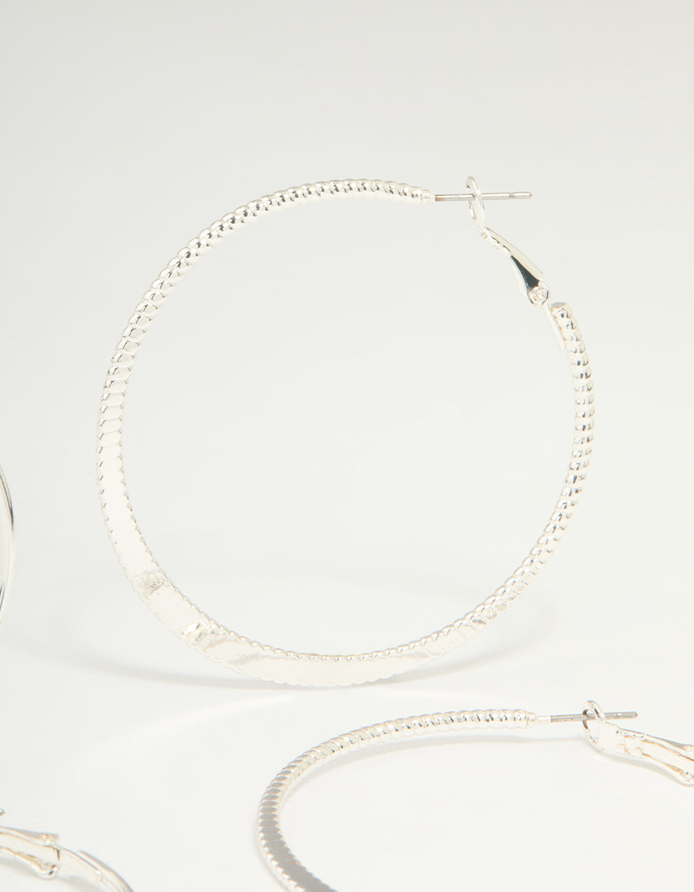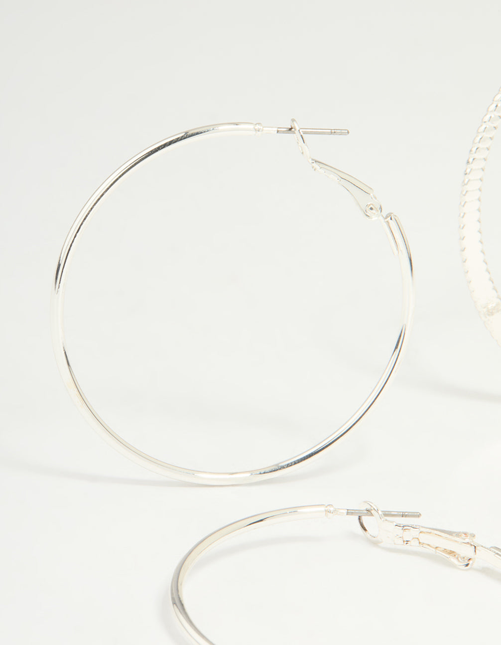 Silver Textured & Plain Hoop Earrings 2-Pack Silver Textured & Plain Hoop Earrings 2-Pack Silver Textured & Plain Hoop Earrings 2-Pack