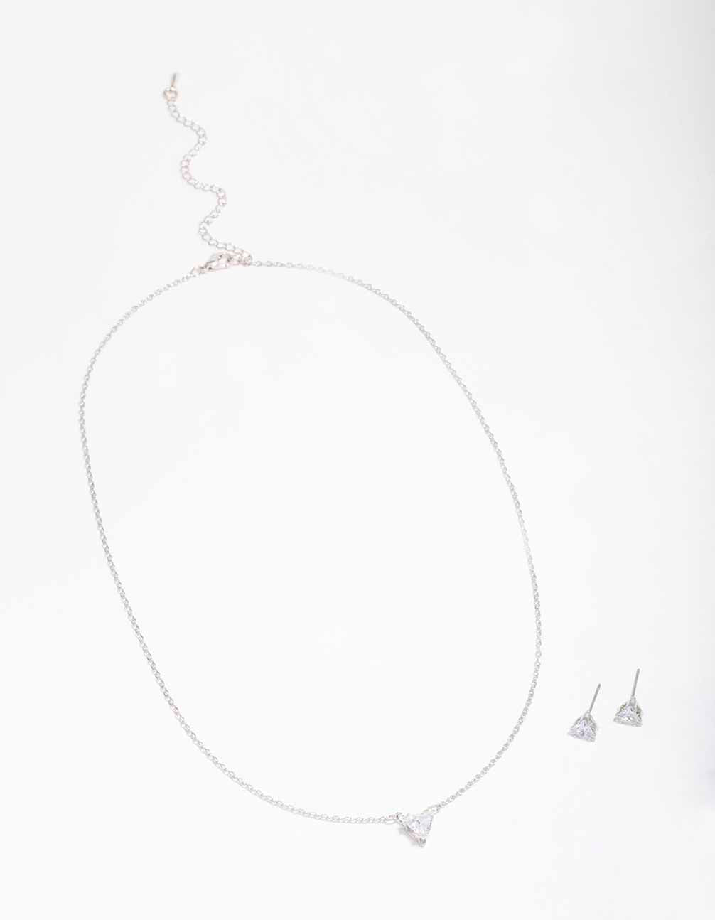 Silver Triangular Diamante Necklace & Earring Jewellery Set