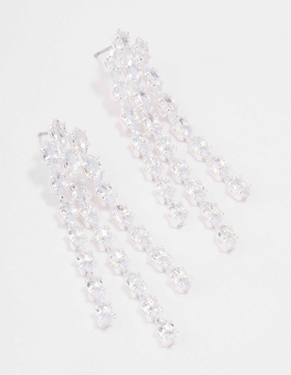 Silver Cubic Zirconia Cup Chain Drop Earrings