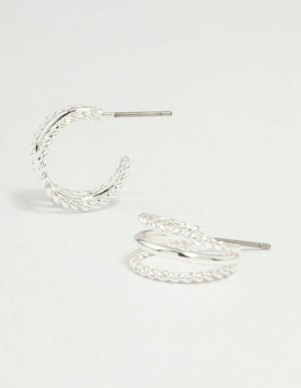 Step up your style game with these Silver Twisted & Plain Triple Hoop Earrings. Featuring hoops with a triple design that features one hoop in sleek silver, two with a chic twisted design and one with a smooth, polished finish, these earrings are versatile enough for any occasion. Whether you're dressing up for a dinner date or adding flair to your everyday outfit, these triple hoop earrings are the ultimate go-to accessory. Pair them with a simple blouse and jeans for a casual day out or with a flowing maxi dress for a more dressed-up look. Lightweight and stylish, these silver hoops combine texture and shine, making them a standout addition to your jewellery collection. Perfect for anyone who loves unique and timeless jewellery pieces!