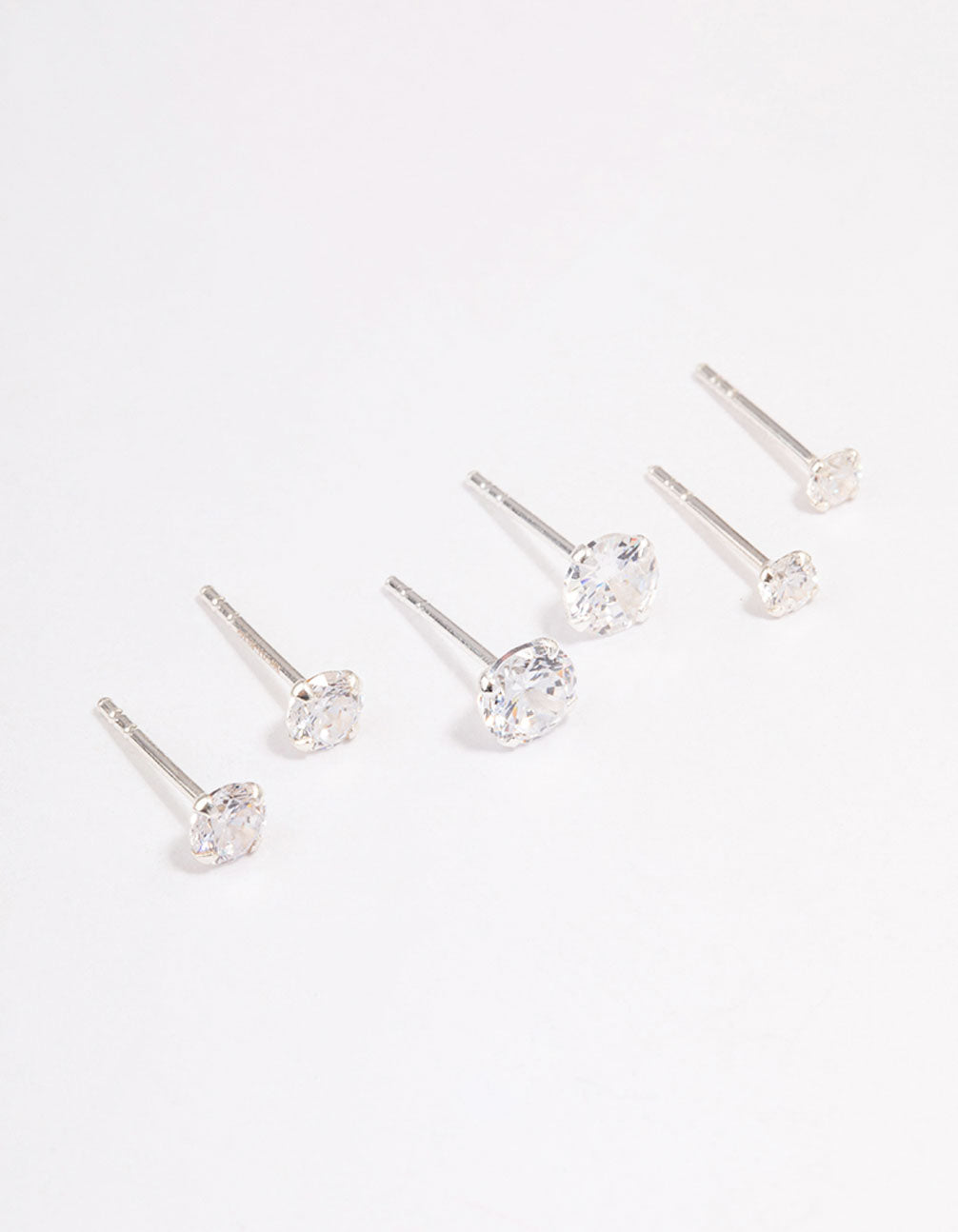 This gift box contains three sets of stud earrings featuring varying sizes of cubic zirconia embellishments.