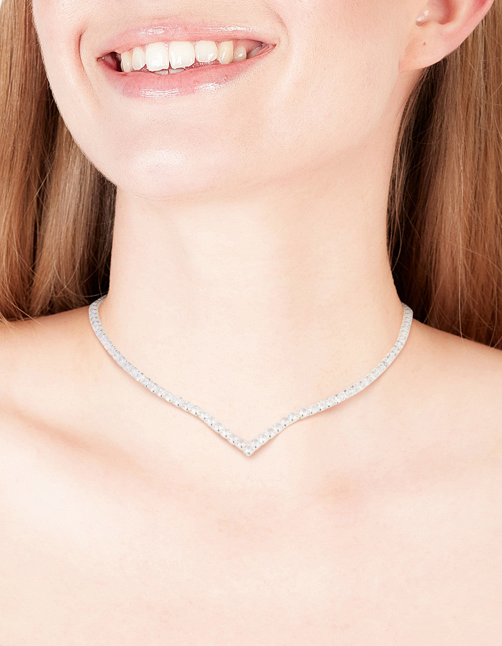Silver Cubic Zirconia Cup Chain Pointed Tennis Necklace