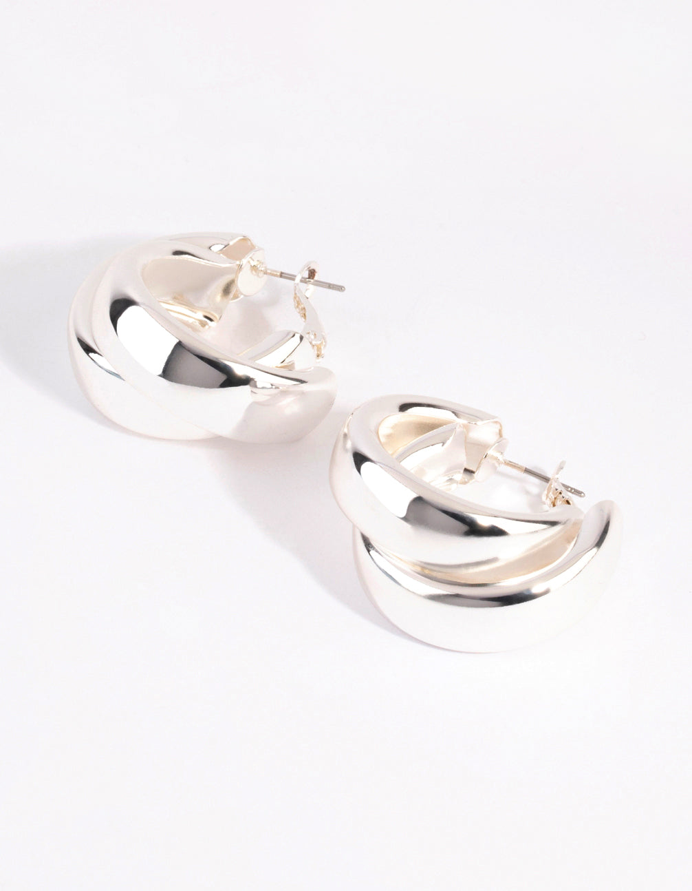 Silver Thick Double Hoop Earrings