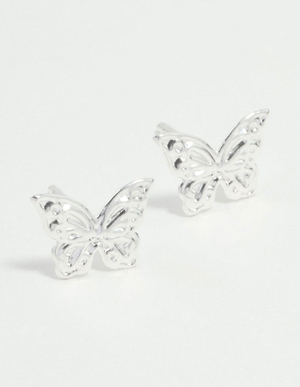Add a touch of whimsical elegance to any outfit with these charming Sterling Silver Butterfly Stud Earrings, featuring a delicate butterfly design.