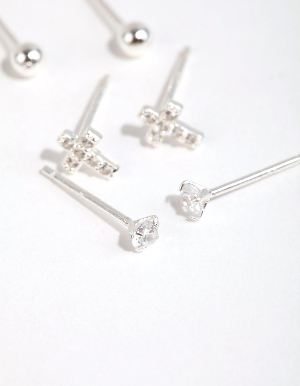 Sterling Silver Cross & Diamante Stud Earring Pack