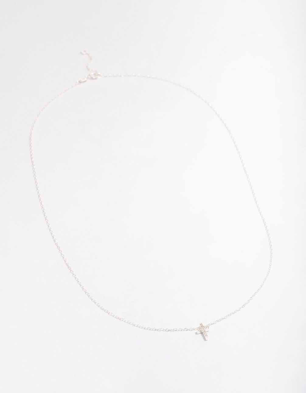 This sterling silver pendant necklace features a dainty chain and cubic zirconia encrusted cross motif, perfect for styling in your everyday stack.