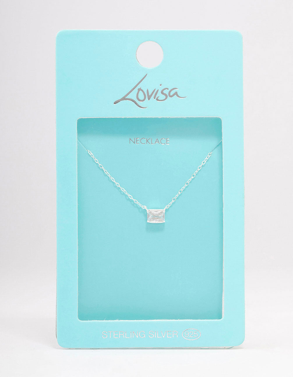 This sterling silver pendant necklace features a dainty chain and emerald-cut cubic zirconia pendant, perfect for styling in your everyday stack.