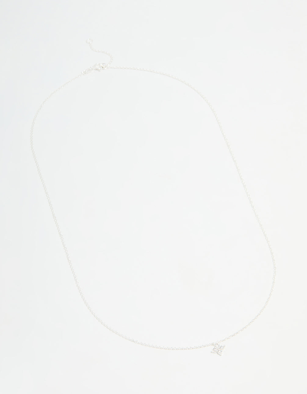 Sterling Silver Cubic Zirconia Micro Flower Pendant Necklace