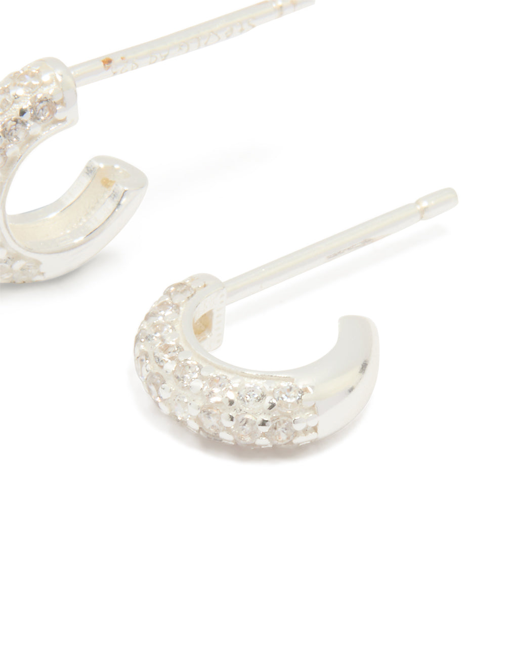 Add a touch of glamour to your look with these Sterling Silver Cubic Zirconia Pave C-Shaped Hoop Earrings. Crafted from sterling silver, these chic hoop earrings feature a sleek C-shape design, beautifully adorned with sparkling cubic zirconia crystals for an elegant, eye-catching finish. Perfect for day-to-night wear, their timeless style makes them a versatile addition to your jewellery collection. Dress them up with a little black dress for an evening out or pair them with a cosy jumper and jeans for a casual, polished vibe. Whether you're heading to a party, dinner date, or just want to add a little sparkle to your everyday wardrobe, these sterling silver hoops are a must-have accessory. Stylish, lightweight, and effortlessly sophisticated!